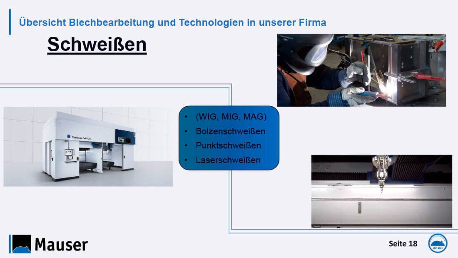 - Schweißen (Laser-Schweißen, WIG/MIG/MAG, Bolzen- und Punktschweißen)